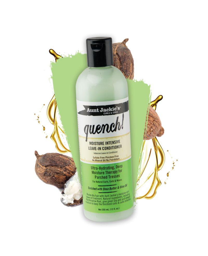 Offrez à vos boucles une hydratation intense avec le Quench Moisture Intensive Leave-In Conditioner d’Aunt Jackie’s. Ce soin sans rinçage, enrichi en beurre de karité, huile d’olive extra vierge et racine de guimauve, nourrit en profondeur, facilite le démêlage et redonne douceur et brillance à vos cheveux. Sa formule légère pénètre la fibre capillaire sans alourdir, idéale pour les cheveux bouclés, frisés ou ondulés en quête de souplesse et de définition.