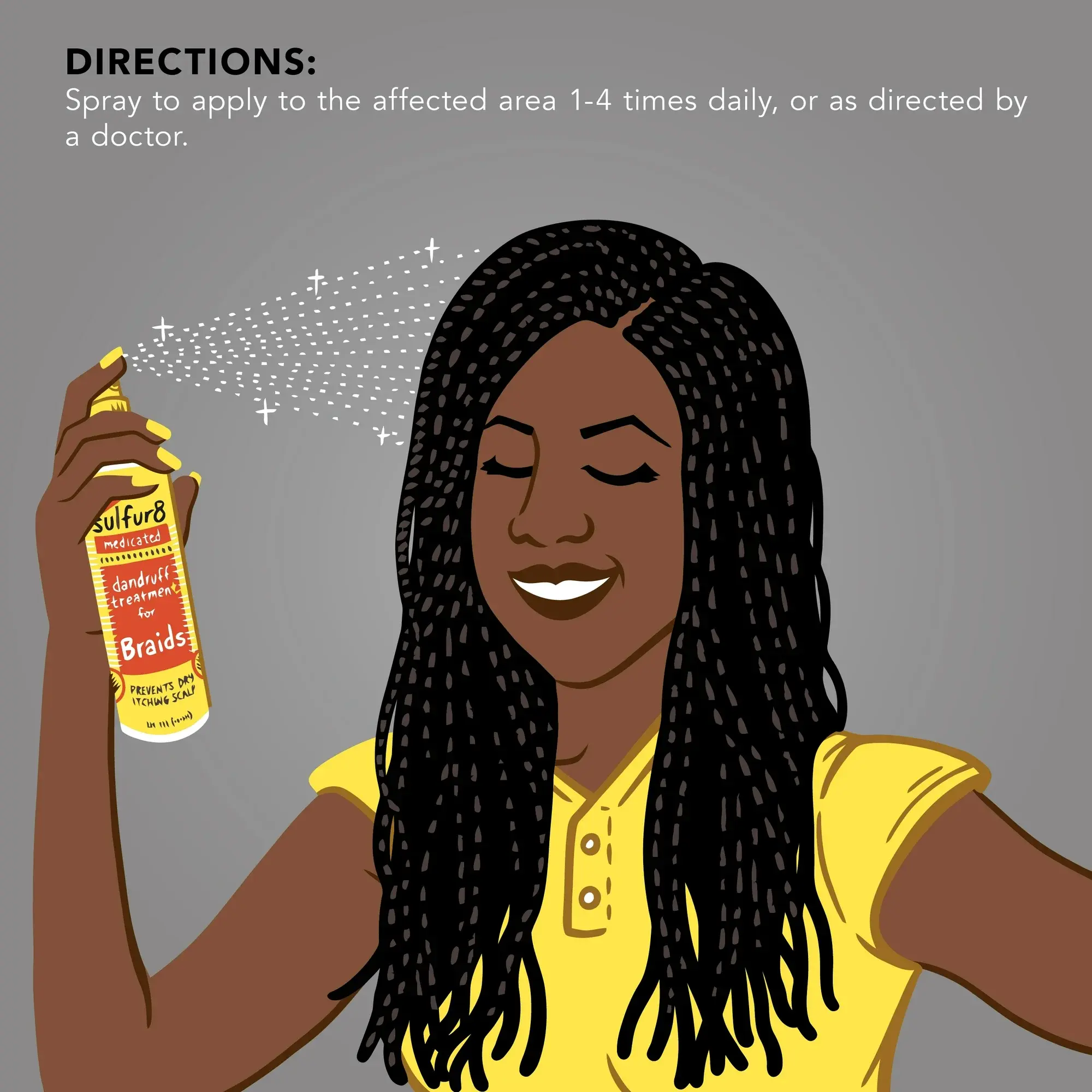 L’après-shampoing Sulfur8 en spray offre un traitement ciblé contre les pellicules et les démangeaisons propres aux coiffures protectrices (tresses, locks, twists, extensions).